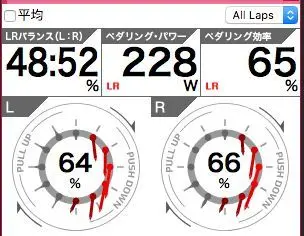 いつも右のペダリングは2時くらいからトルクが掛かり始めて下死点でも踏み入ってもったいないことしてるなぁと思っていたからこれは大きな変化