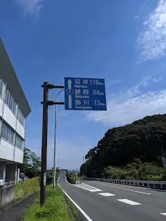 風圧で揺らたり路面の悪さで揺られたりしながら寿命が縮む思いをしながら走っていくとついに名古屋市の看板が...