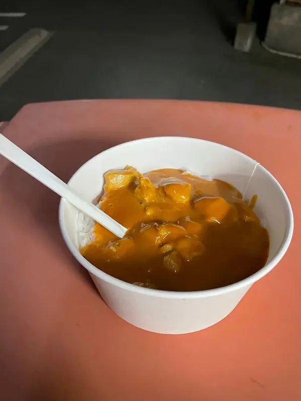 コーラの影響もあって疲れた体が食べ物を徐々に受け付けなくなっている気はしたが最後の90kmを処理するにはカロリーが必要。ここはバターチキンカレーをなんとかお腹に押し込む。 本当はカツカレーを食べて「勝つさ」したかったのだがバターチキンしかなかった。